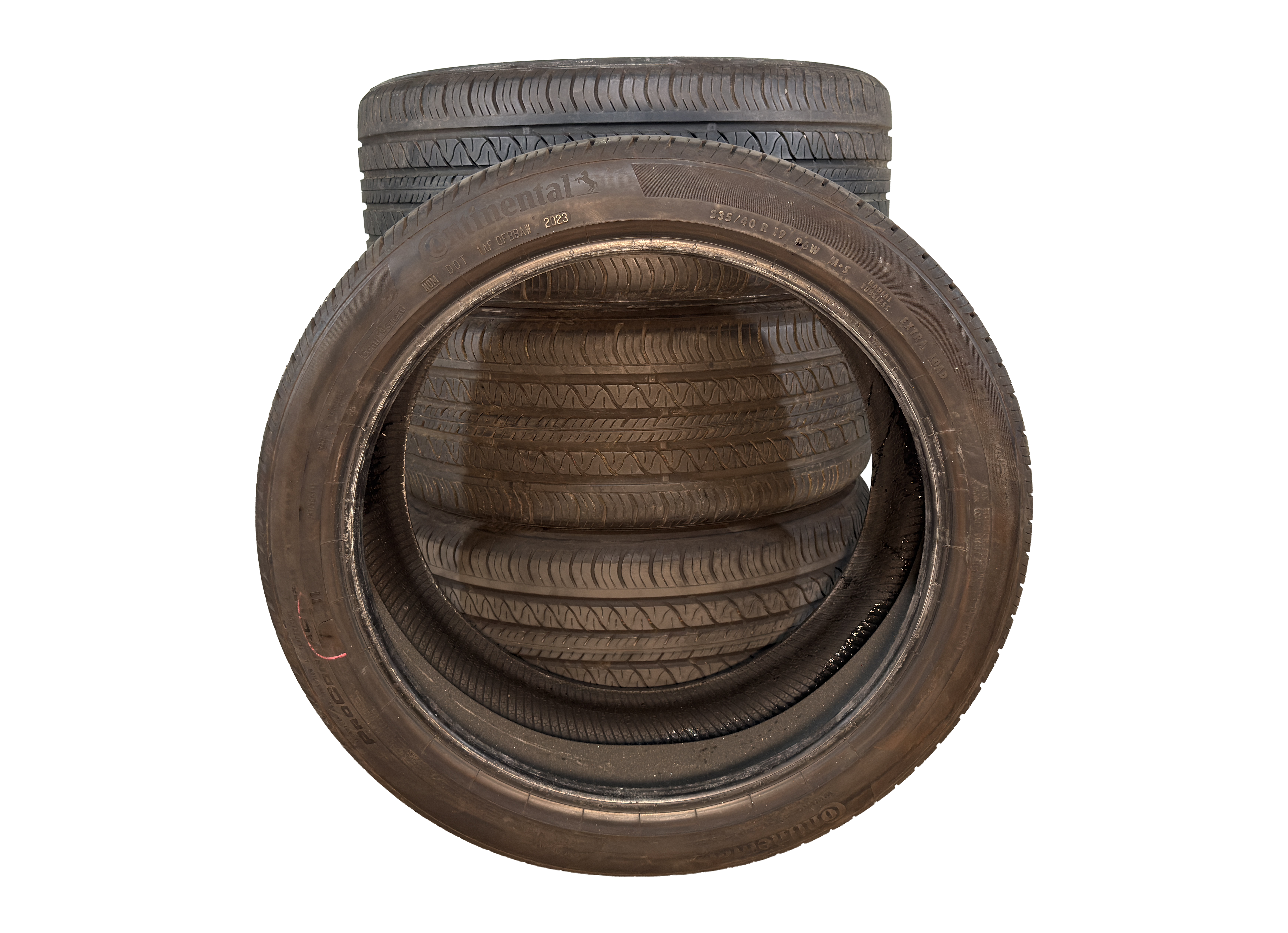 Set of (4) CONTINENTAL PROCONTACT RX - 235 40 19 with ~80% tread life for sale. 30 Day Warranty.